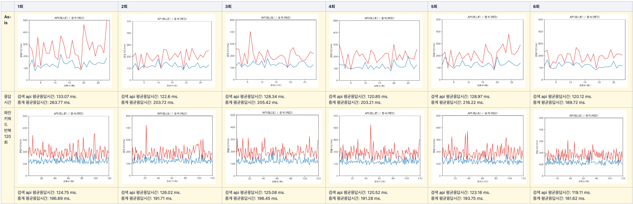 검색 API 와 중계(mashup) API 를 같이 호출해보고 실행시간을 기록한다.