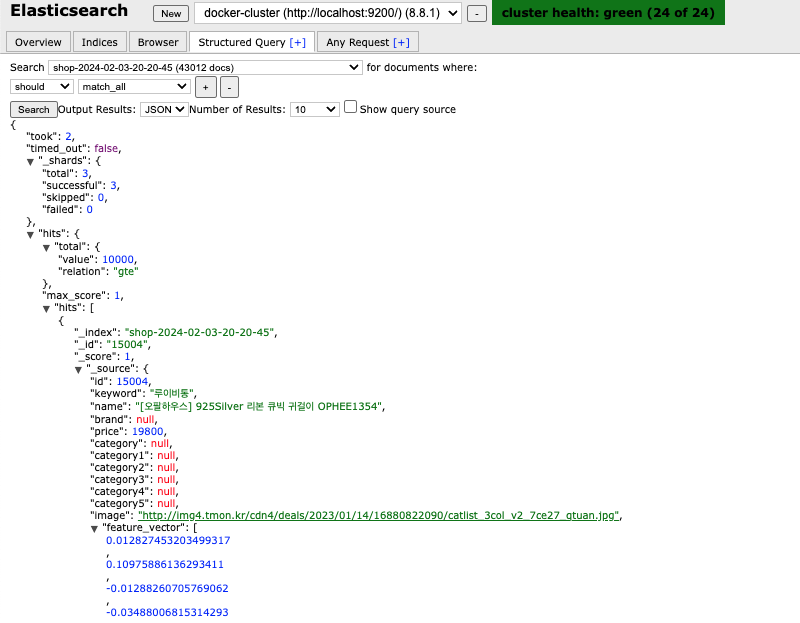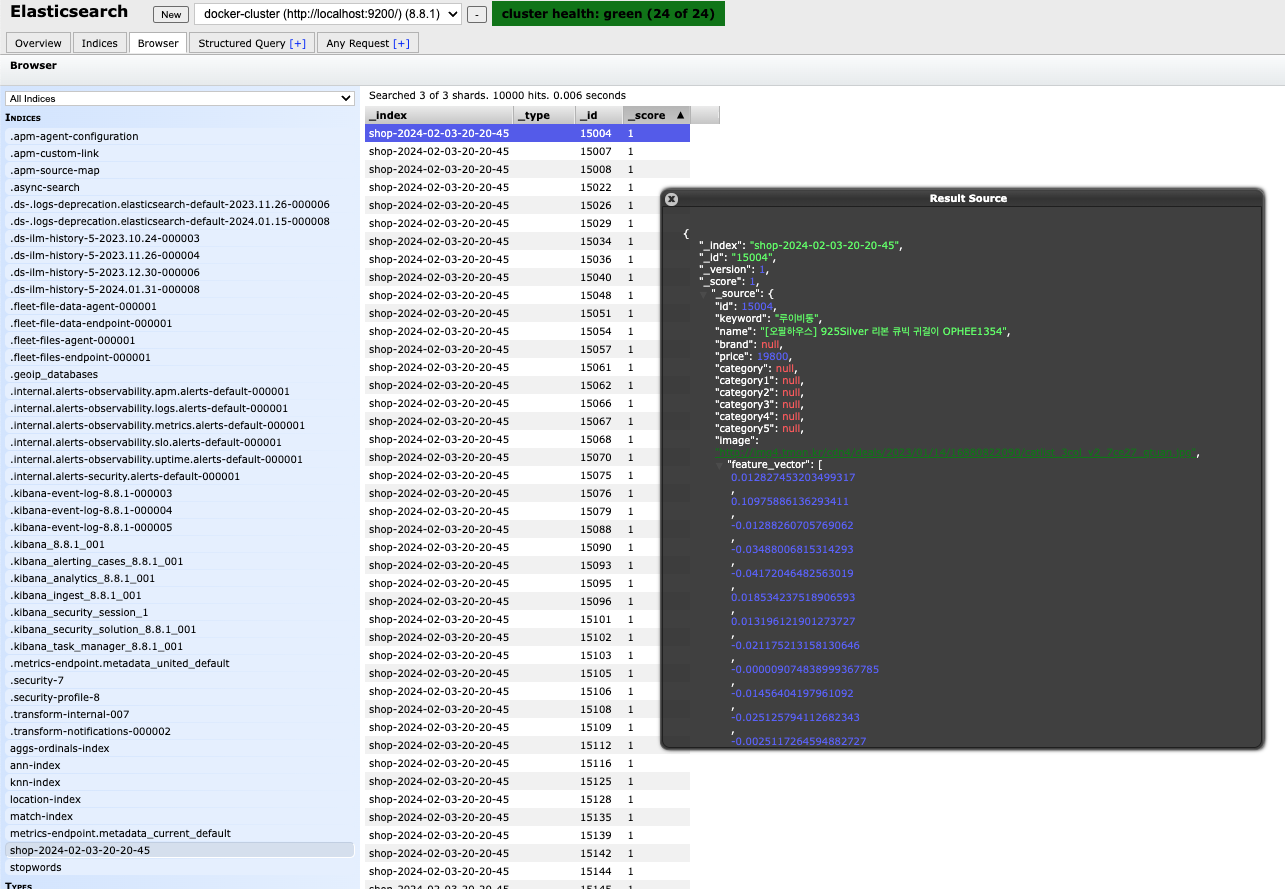 Browser 탭은 좌측의 인덱스명을 클릭해서 row를 클릭하면 데이터를 확인할 수 있다.